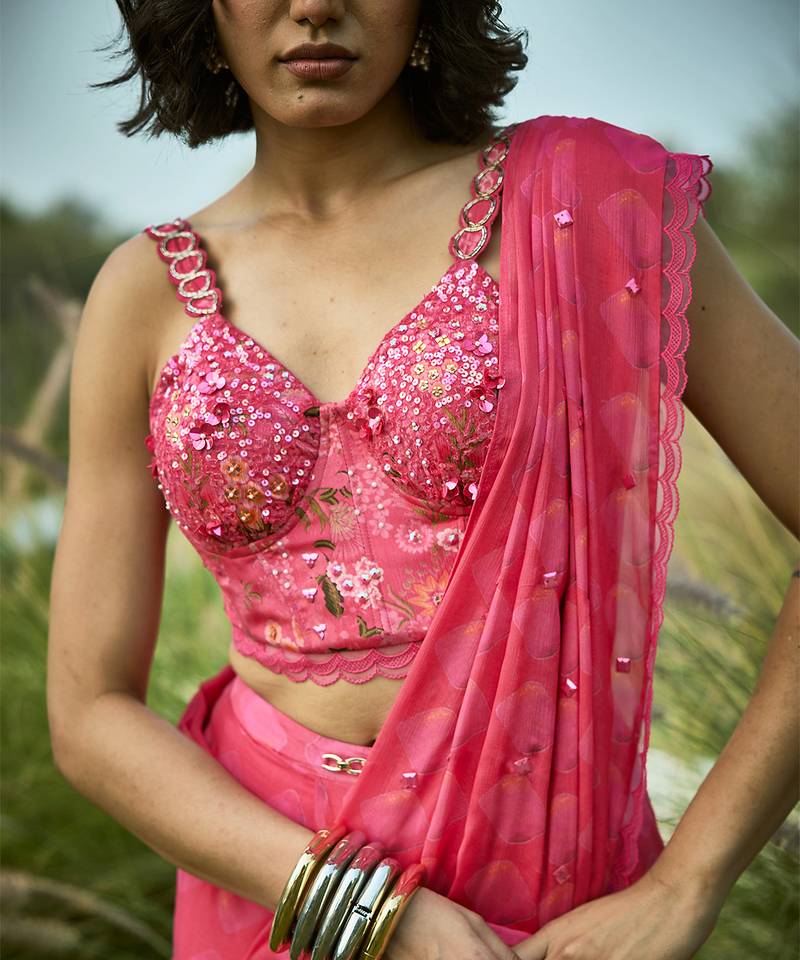 Pink embroidered chiffon saree