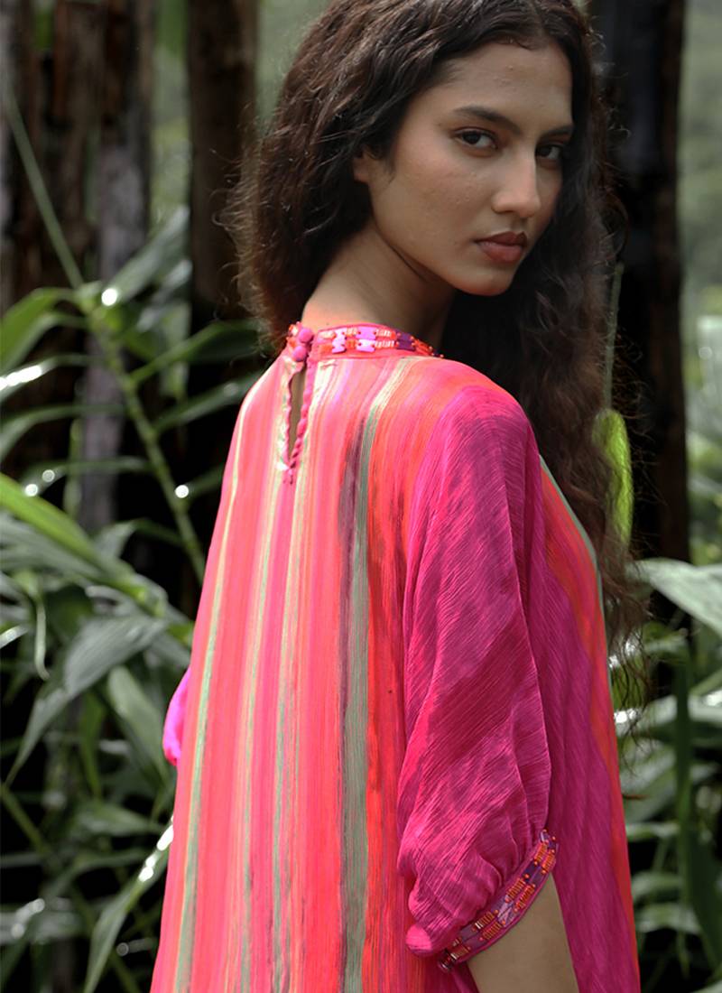 | Product Description | This Pink Printed Chiffon Kurta Set Showcases Breezy Elegance And Cheerful Charm. Crafted From Lightweight Chiffon Fabric, It Features Vibrant Prints That Add A Fresh, Lively Touch. Perfect For Daytime Festivities And Casual Celebrations, It Offers A Graceful Drape, Airy Comfort, And Effortless Ethnic Style.