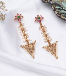 Abhika Creations Gold Toned Floral Top Triangle Dangler Earrings With Pearl Detailing