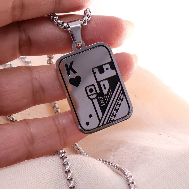| Product Description | The King Of Hearts Playing Card Pendant Necklace For Men Is Designed For A Bold And Confident Look. Inspired By Classic Playing Cards, This Pendant Adds A Stylish And Modern Touch To Your Outfit. Made From Premium Stainless Steel, This Necklace Is Durable, Skin Friendly, And Designed To Maintain Its Shine Over Time. The Silver Tone Chain And Detailed Card Pendant Make It Perfect For Daily Wear, Parties, And Gifting. An Excellent Accessory For Men Who Enjoy Unique And Fashionable Jewelry. |