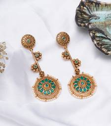 Abhika Creations Traditional Gold & Green Enamel Round Dangler Earrings