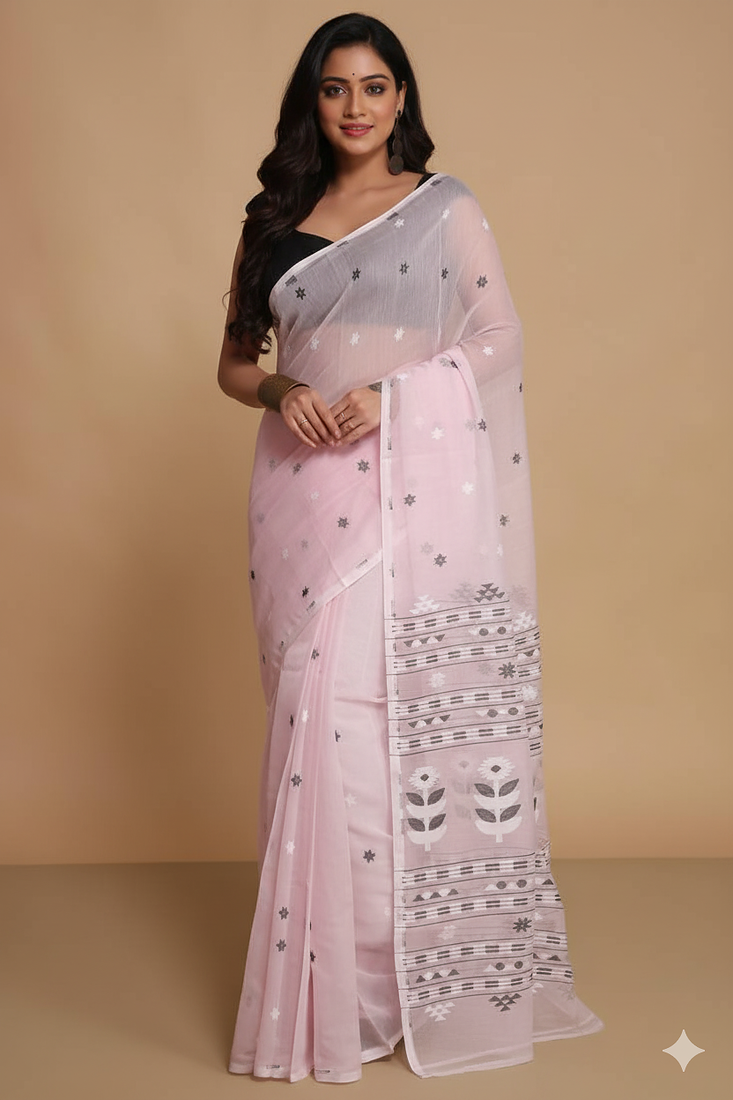 Product Name | Women's Cotton Silk Dhakai Softs Flower Tree Jamdani Sarees (Pink) Without Blouse | |