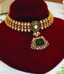 | Product Name | Gold Plated Kundan Green Stones Choker Necklace Set | |