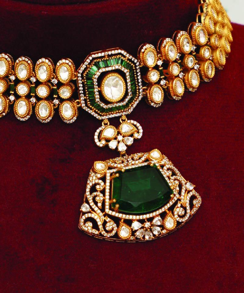 | Product Description | This Gold Plated Kundan Choker Necklace Set Features Vibrant Green Stones Intricately Set In A Traditional Design. Crafted To Enhance Festive And Bridal Looks, It Offers A Rich, Regal Appeal. The Elegant Choker Sits Beautifully On The Neckline, Making It A Statement Accessory For Special Occasions And Celebrations.