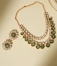 | Product Description | Gold Plated Kundan Necklace Set Embellished With Rich Green Stones, Reflecting Timeless Elegance And Royal Charm. Designed With Intricate Craftsmanship And A Luxurious Finish, This Stunning Set Is Perfect For Weddings, Festive Occasions, And Celebrations, Beautifully Enhancing Traditional And Ethnic Ensembles With A Graceful, Regal Appeal.