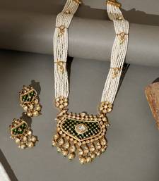 | Product Description | Gold Plated Kundan Necklace Set Embellished With Rich Green Stones, Reflecting Timeless Elegance And Royal Charm. Designed With Intricate Craftsmanship And A Luxurious Finish, This Stunning Set Is Perfect For Weddings, Festive Occasions, And Celebrations, Beautifully Enhancing Traditional And Ethnic Ensembles With A Graceful, Regal Appeal.