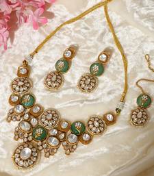 | Product Description | Gold Plated Kundan Necklace Set Embellished With Rich Green Stones, Reflecting Timeless Elegance And Royal Charm. Designed With Intricate Craftsmanship And A Luxurious Finish, This Stunning Set Is Perfect For Weddings, Festive Occasions, And Celebrations, Beautifully Enhancing Traditional And Ethnic Ensembles With A Graceful, Regal Appeal.