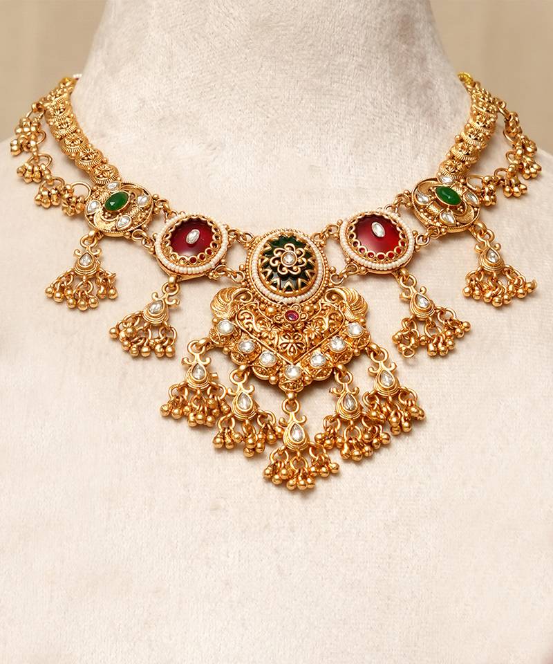 | Product Name | Gold Plated Kundan Multicolor Stones Necklace Set | |