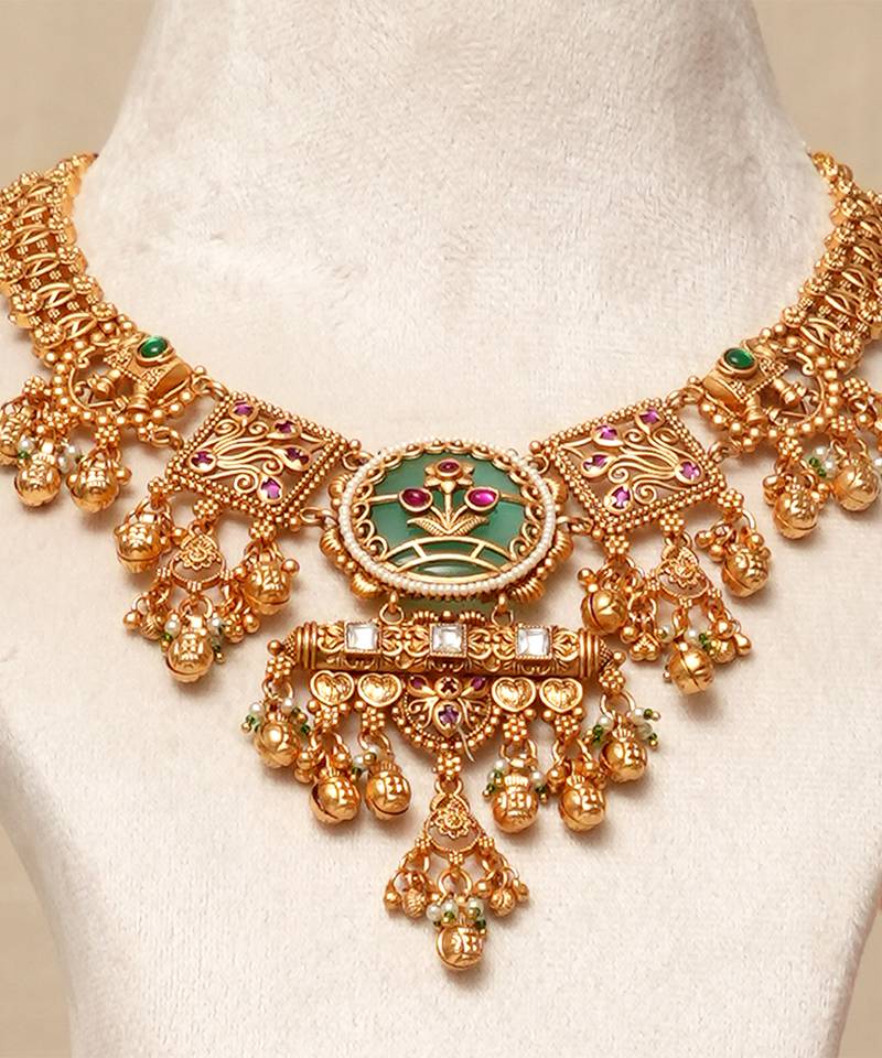 | Product Description | Gold Plated Multicolor Stones Necklace Set Is A Vibrant And Exquisite Accessory That Elevates Any Festive Or Wedding Ensemble. Featuring Intricate Craftsmanship Adorned With Dazzling Multicolor Stones, It Brings A Perfect Blend Of Tradition And Contemporary Elegance. Ideal For Special Occasions, It Adds A Regal And Eye Catching Charm.