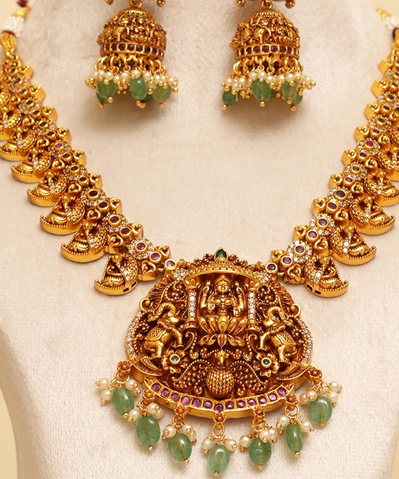 | Product Description | Inspired By Classic Temple Jewelry, This Gold Plated Temple Necklace Set Features Detailed Craftsmanship And A Rich Antique Finish. The Beautifully Designed Motifs Enhance Ethnic Outfits Effortlessly. Ideal For Weddings, Poojas, And Cultural Celebrations, This Set Brings Timeless Tradition And Graceful Sophistication To Your Jewelry Collection.