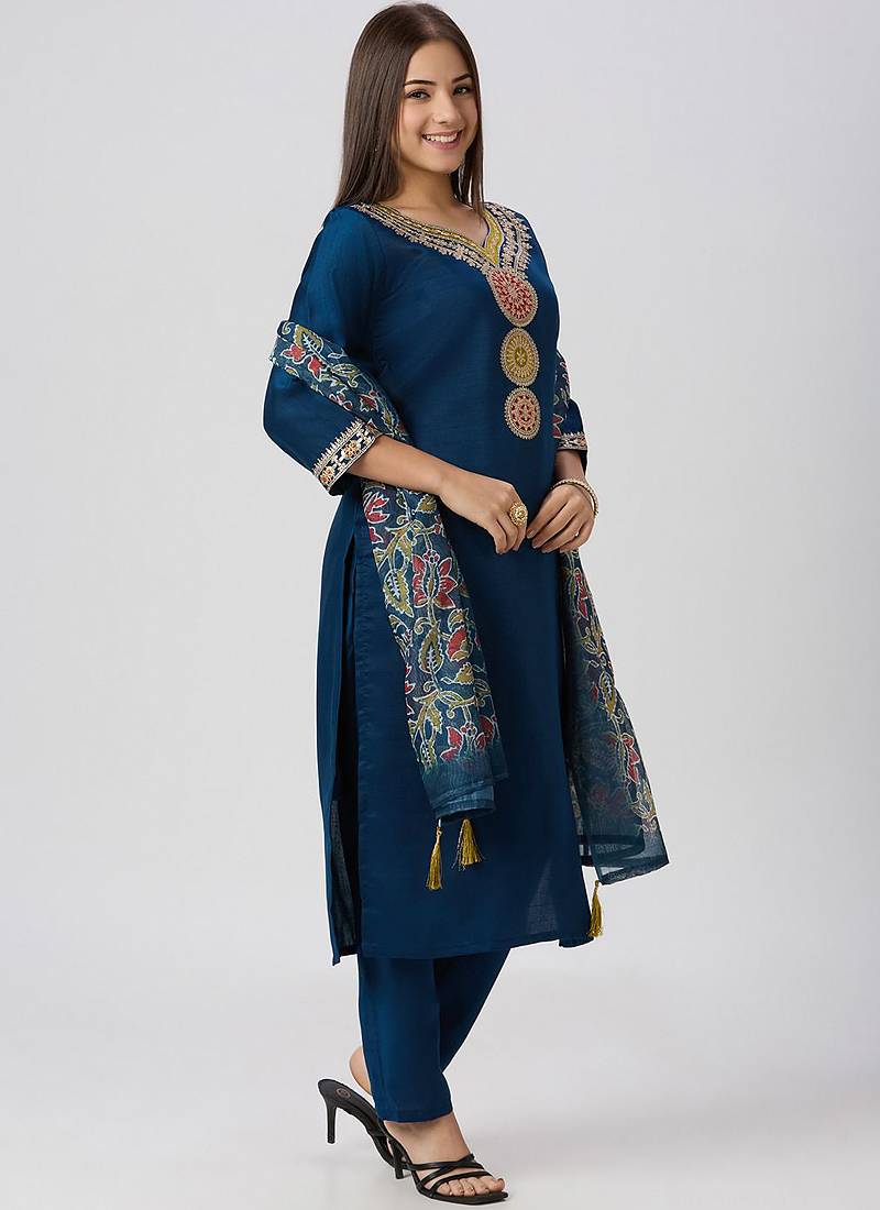 Product Name Blue Vatican Silk Kurti Pant Dupatta Set