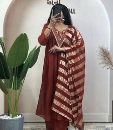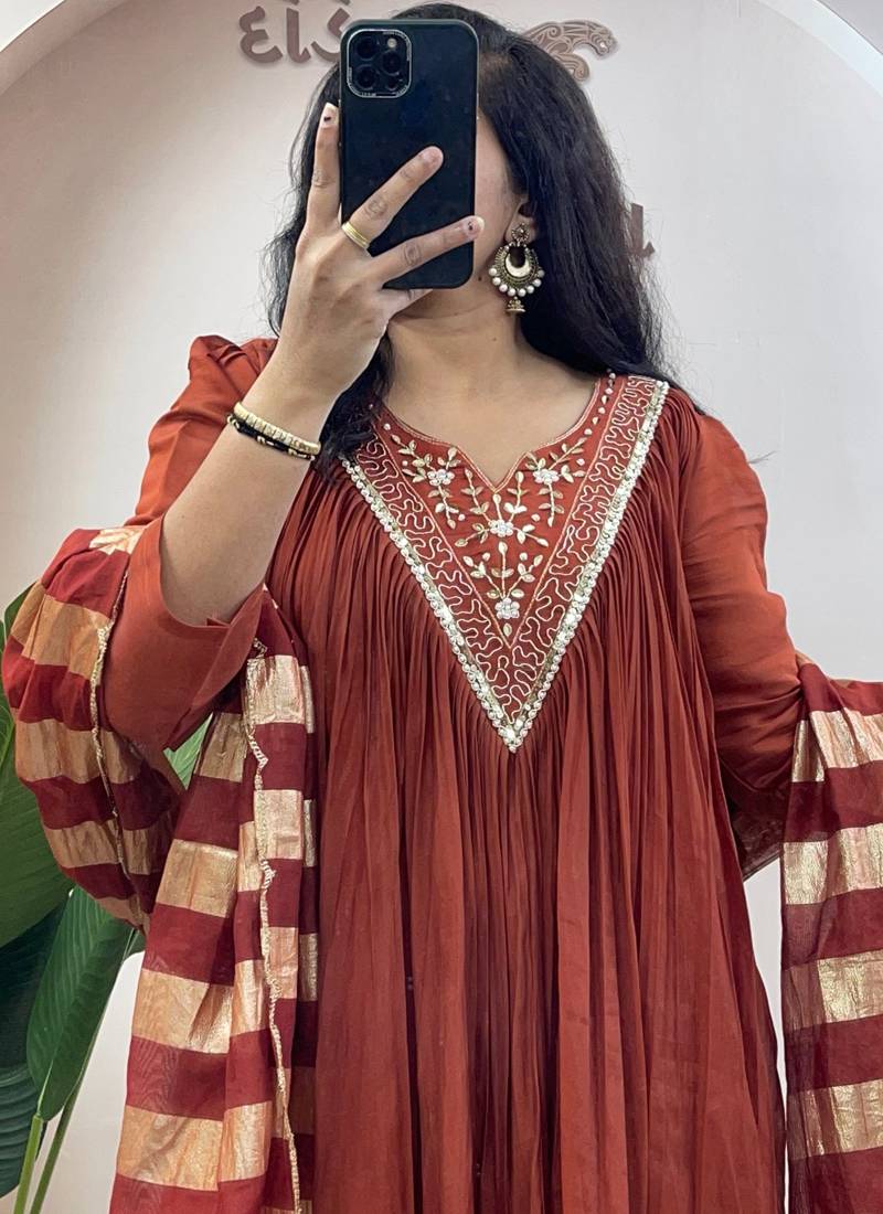 Brown pure mul chanderi anarkali suit dupatta stitched