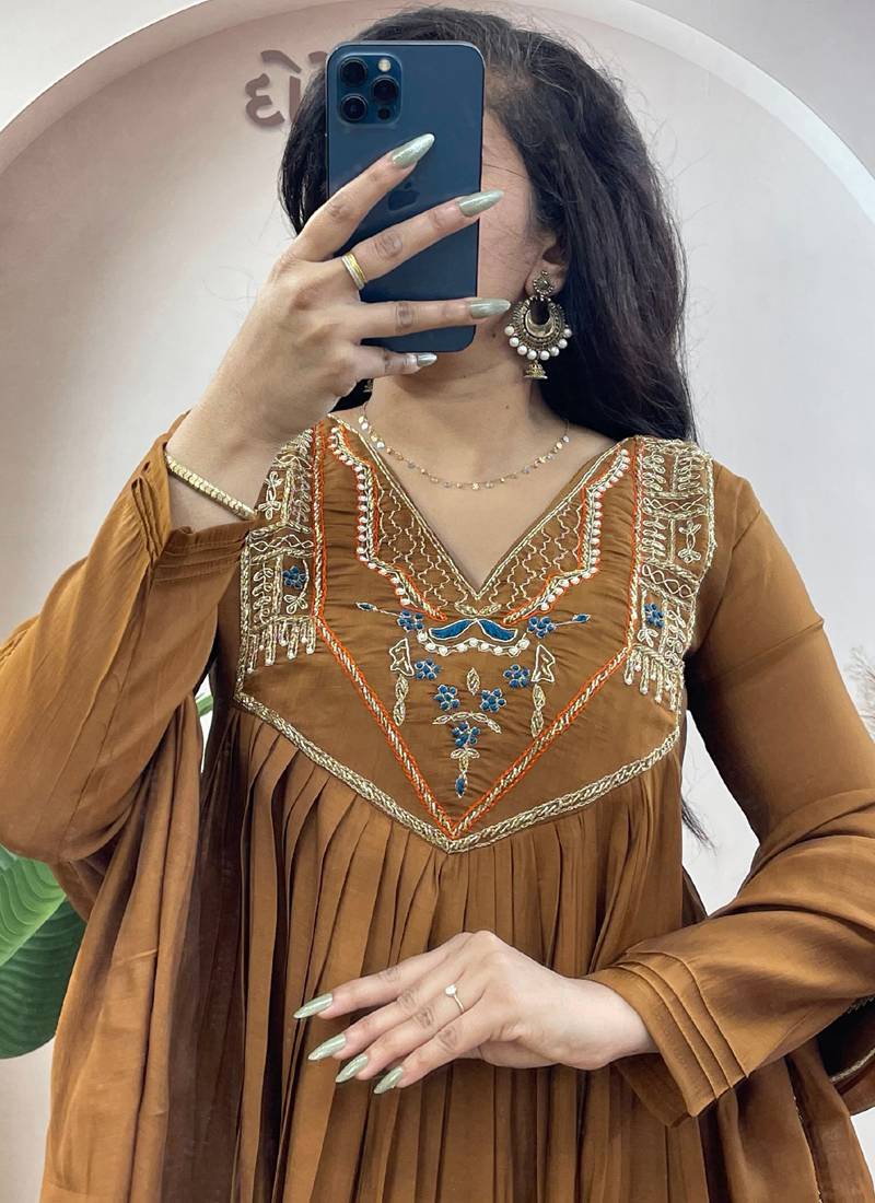 | Product Name | Brown Pure Mul Chanderi Salwar Suit With Dupatta | |