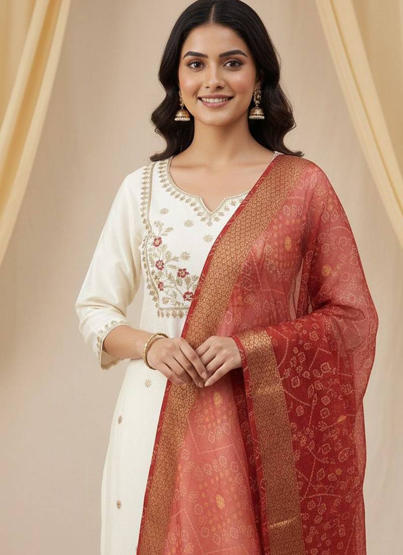| Product Name | Cream Roman Silk Kurti Pant Dupatta Set | |