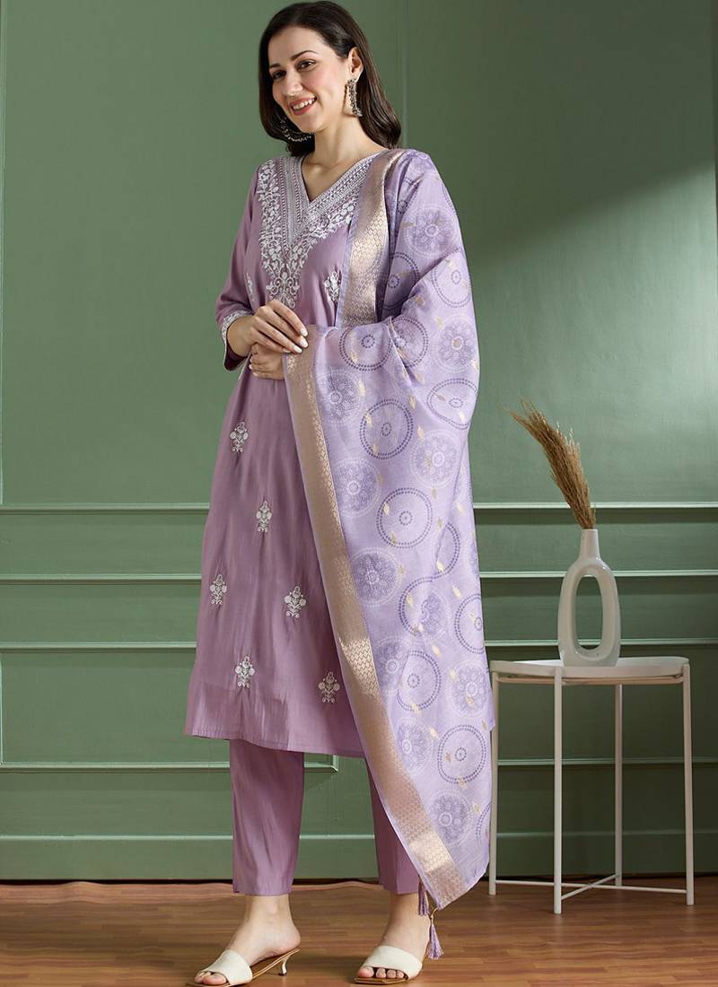 | Product Name | Lavender Roman Silk Kurti Pant Dupatta Set | |