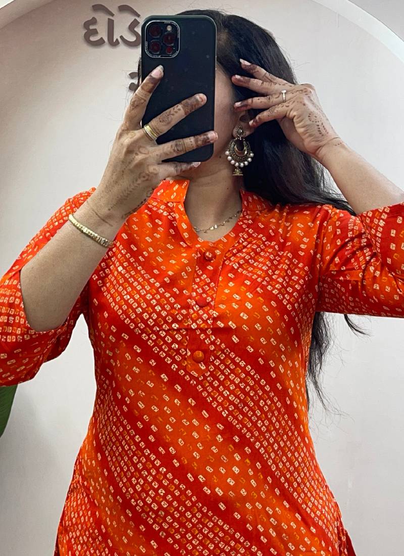 | Product Name | Orange Pure Soft Rayon Cotton Kurti Palazzo Dupatta | |
