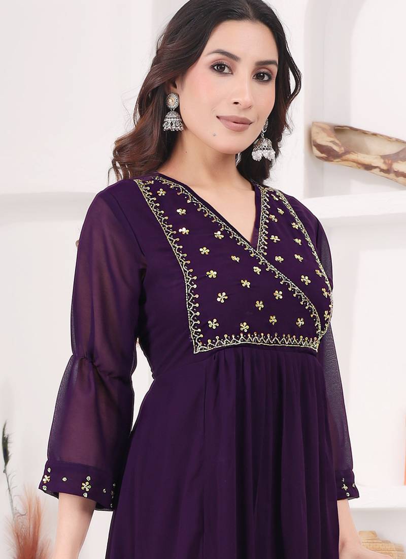 | • | Kameez | : | Color- Purple / Fabric- Georgette |
