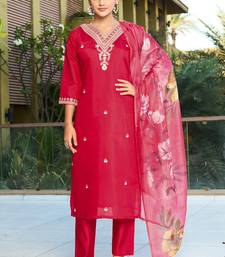 | Product Name | Red Roman Silk Kurti Pent Dupatta Set | |