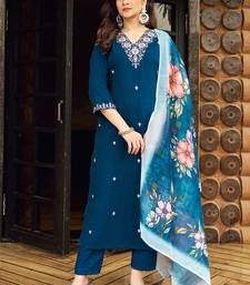 Teal roman silk kurti pant dupatta set stitched