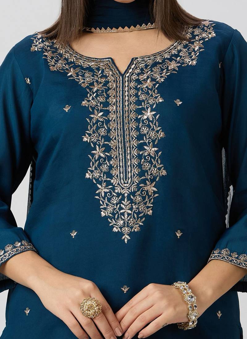 | Product Name | Teal Roman Silk Kurti Pant Dupatta Set | |