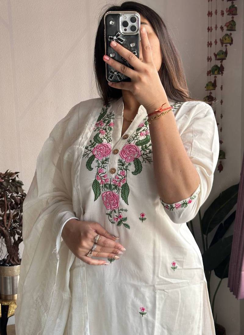 | Product Name | White Khadi Cotton Kurti Pent Dupatta Set | |