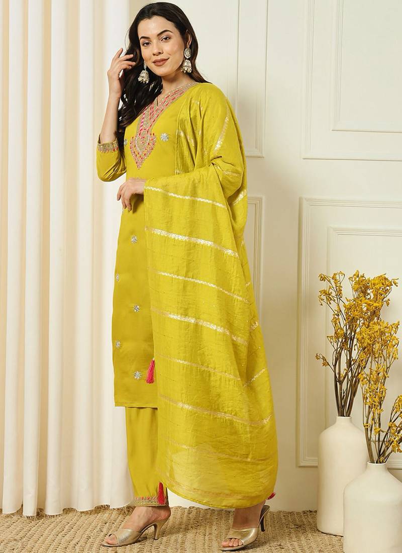 | Product Name | Yellow Roman Silk Kurti Pent Dupatta Set | |