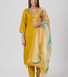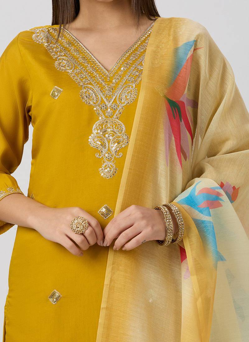 | Product Name | Yellow Roman Silk Kurti Pant Dupatta Set | |
