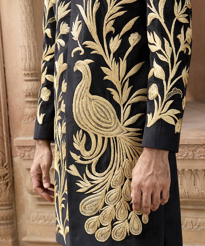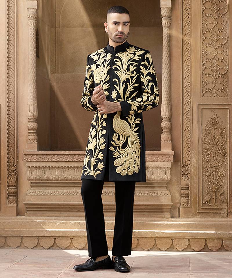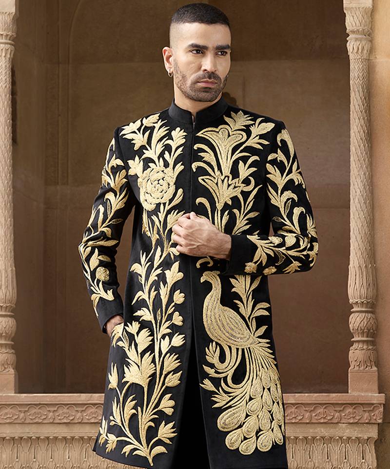 This Black Velvet Indowestern Set Is Enriched With Intricate Embroidery, Creating A Bold And Luxurious Festive Look. The Plush Texture And Structured Tailoring Provide Dramatic Elegance, Ideal For Evening Receptions And Grand Celebrations With A Statement Making Presence.