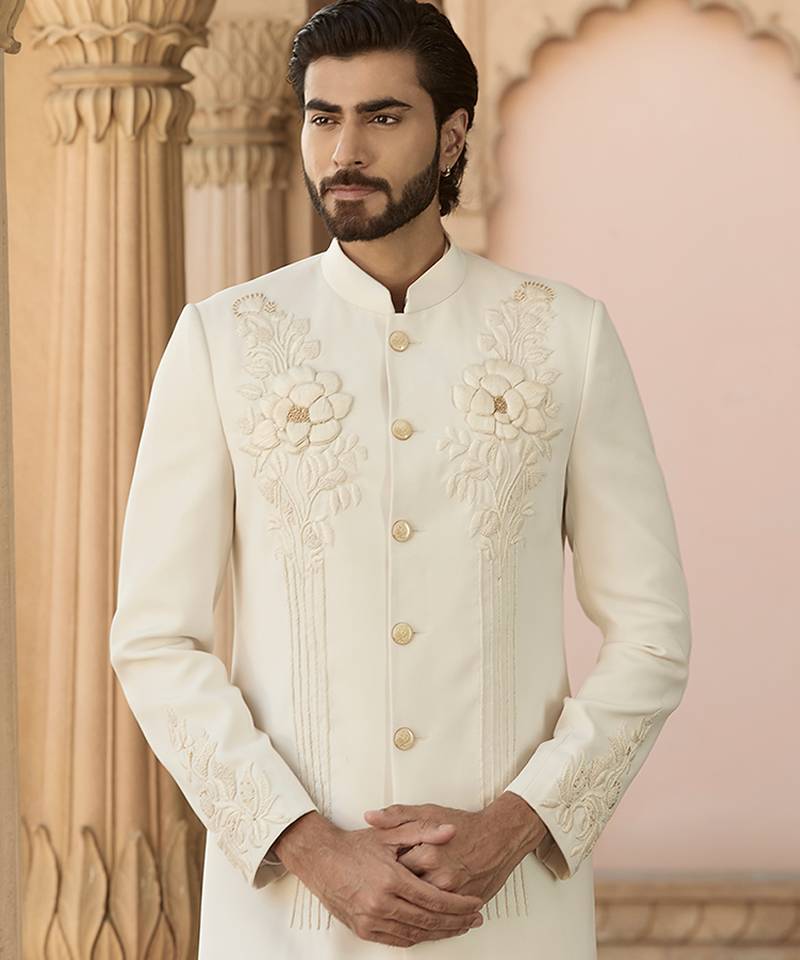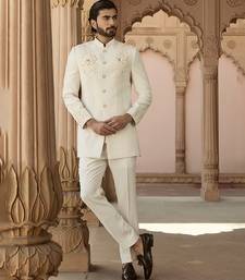 | Product Description | This Ivory Bandhgala Set Is Crafted From Smooth Crepe Silk And Accented With Elegant Embroidery For A Modern Festive Appeal. The Soft Drape And Refined Structure Create A Contemporary Silhouette, Making It Ideal For Receptions And Formal Celebrations With Traditional Undertones.