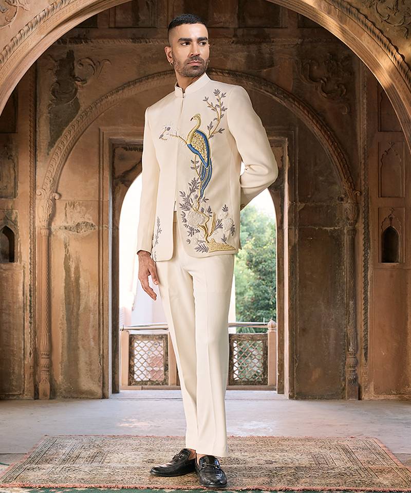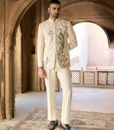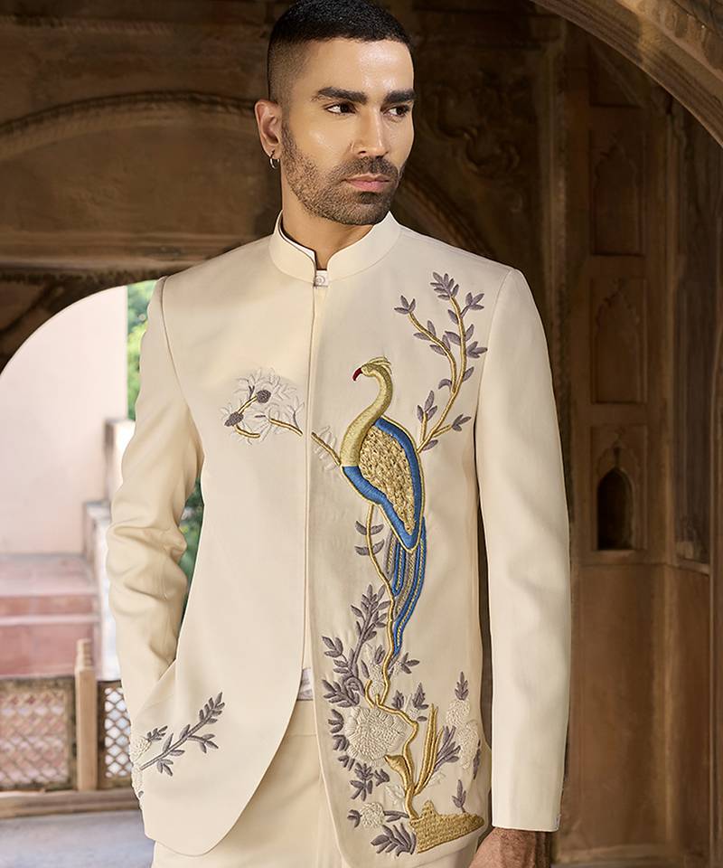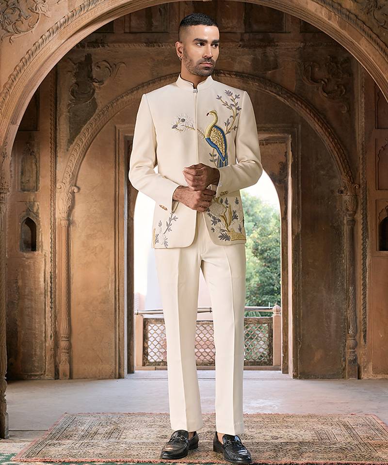Ivory embroidered linen bandhgala set