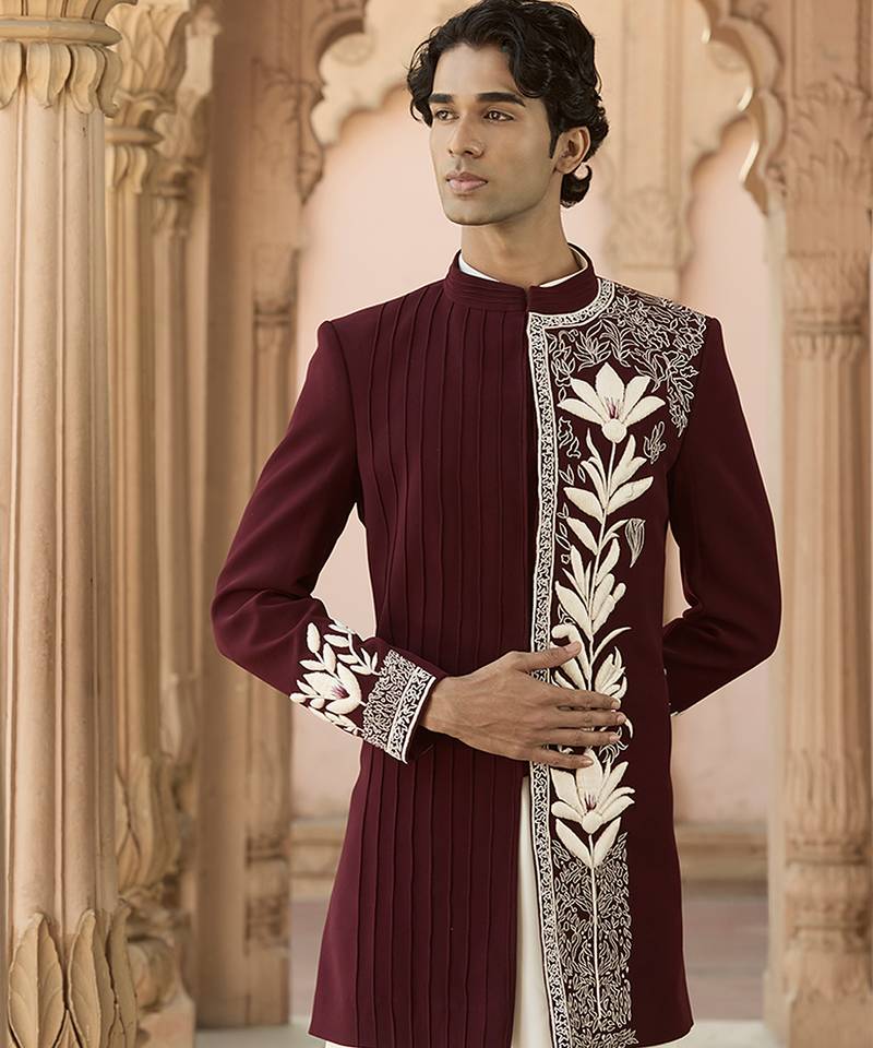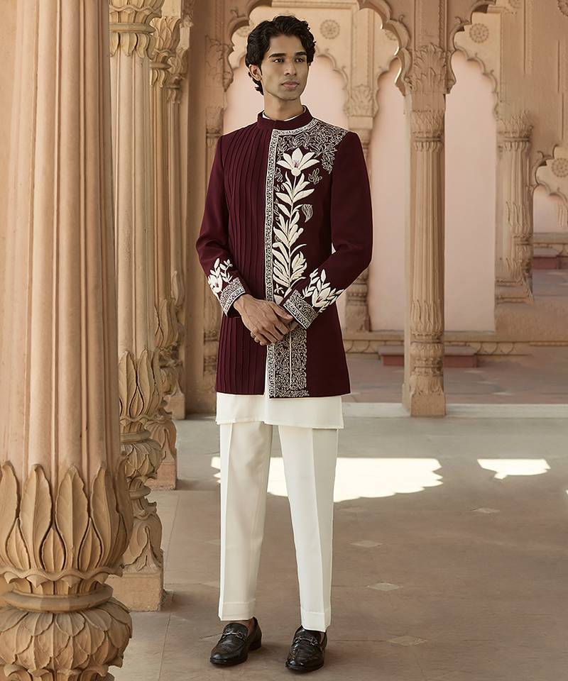 | Product Description | A Maroon Linen Bandhgala Set Featuring Detailed Embroidery For A Sophisticated Festive Look. The Breathable Fabric And Tailored Design Ensure Comfort And Elegance, Making It Suitable For Weddings And Cultural Occasions Where Classic Style Meets Modern Refinement.