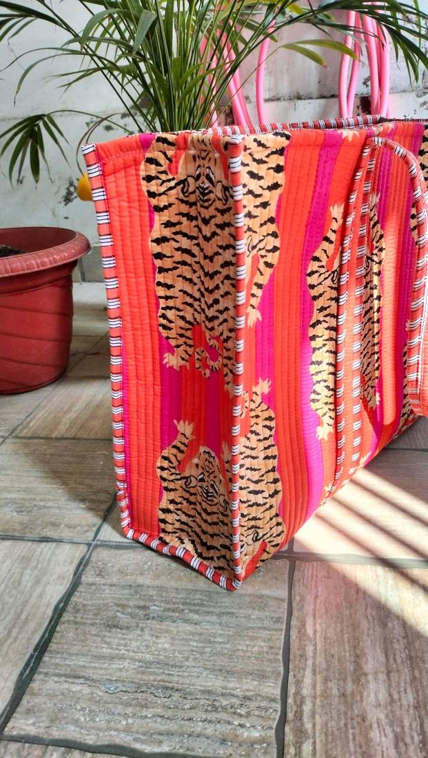 Tiger print tote bag indian cotton quilted handbag shopping carry bag hand bags