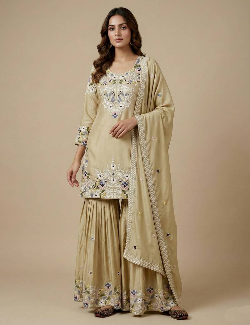 | Product Name | Cream Designer Crepe Readymade Designer Suit | |