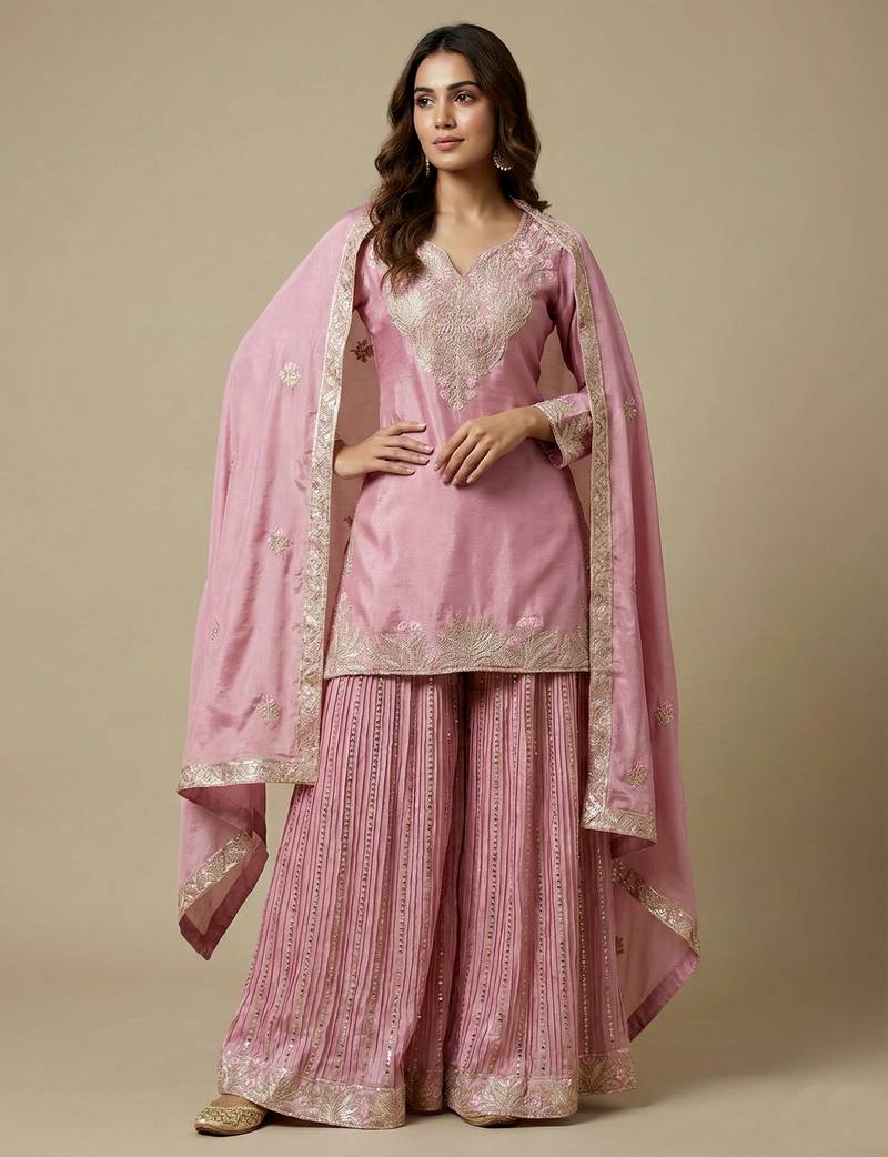 | Product Name | Light Pink Designer Faux Silk Readymade Designer Suit | |