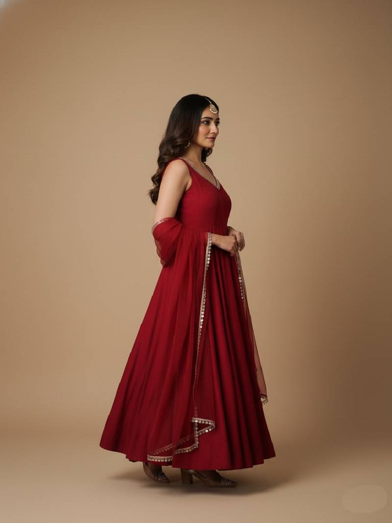 | • | Dupatta | : | Color- Maroon / Fabric- Net |