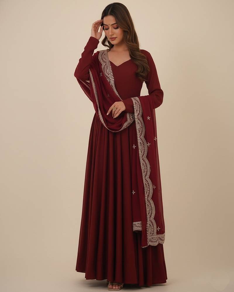 | • | Dupatta | : | Color- Maroon / Fabric- Pure Georgette |