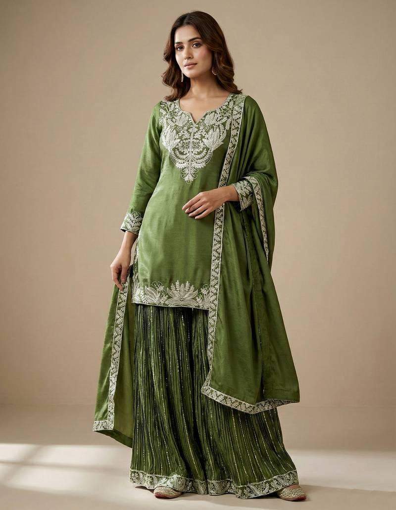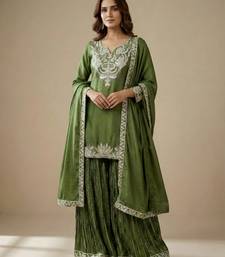 | • | Kameez | : | Color- Mehendi / Fabric- Faux Silk |