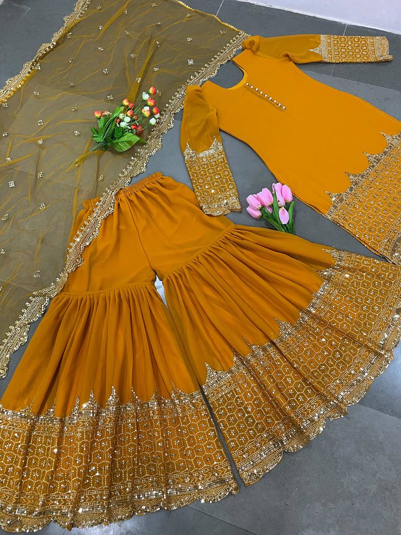 | Product Name | Mustard Designer Georgette Readymade Designer Suit | |
