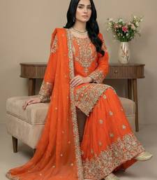 Orange cord faux georgette salwar suit stitched