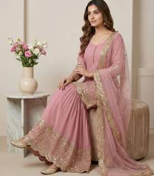 Pink designer georgette readymade designer suit stitched