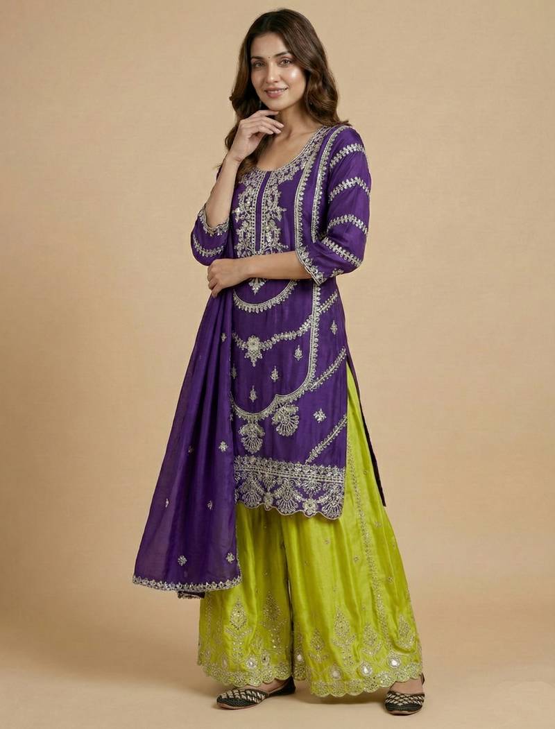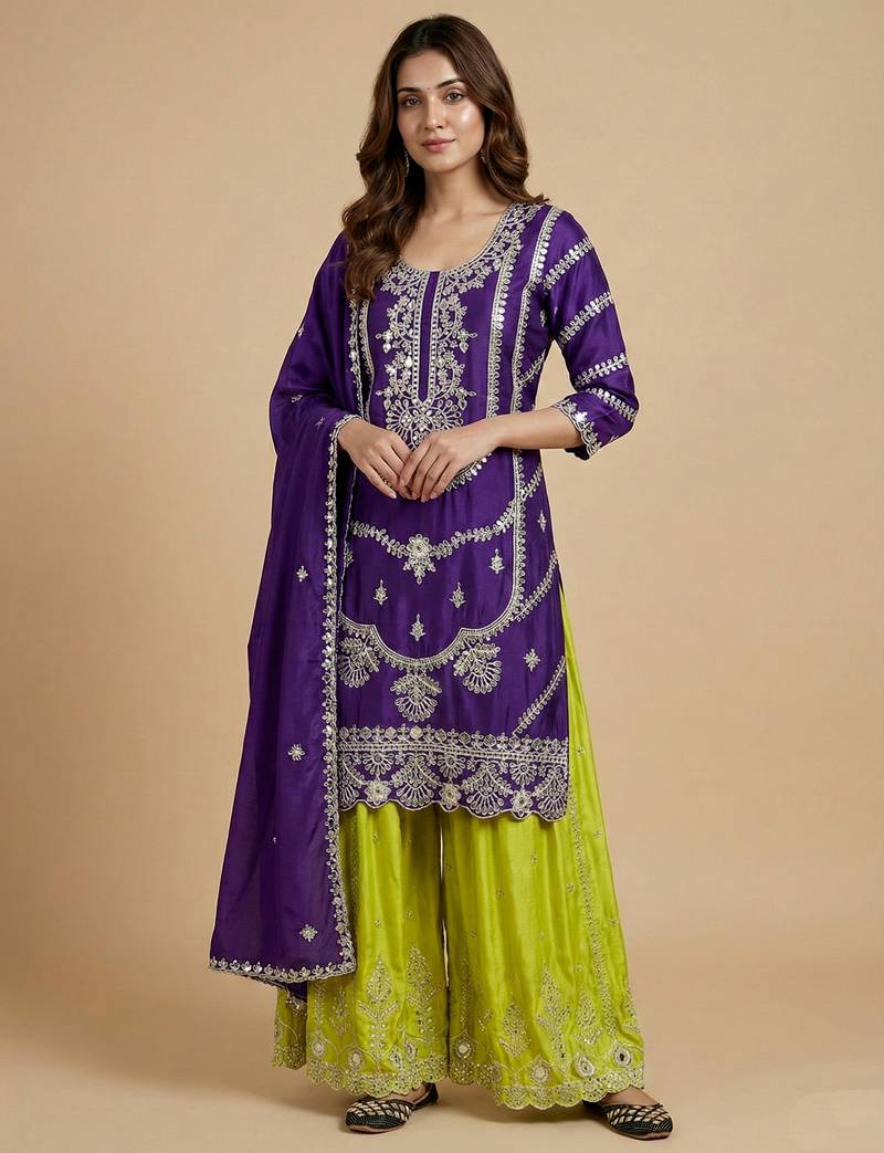 | Product Name | Purple Designer Faux Silk Readymade Designer Suit | |