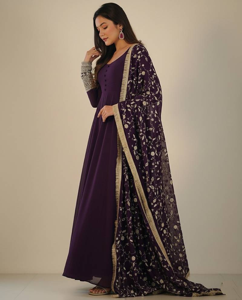Product Name Purple Embroidered Pure Georgette Salwar Suit