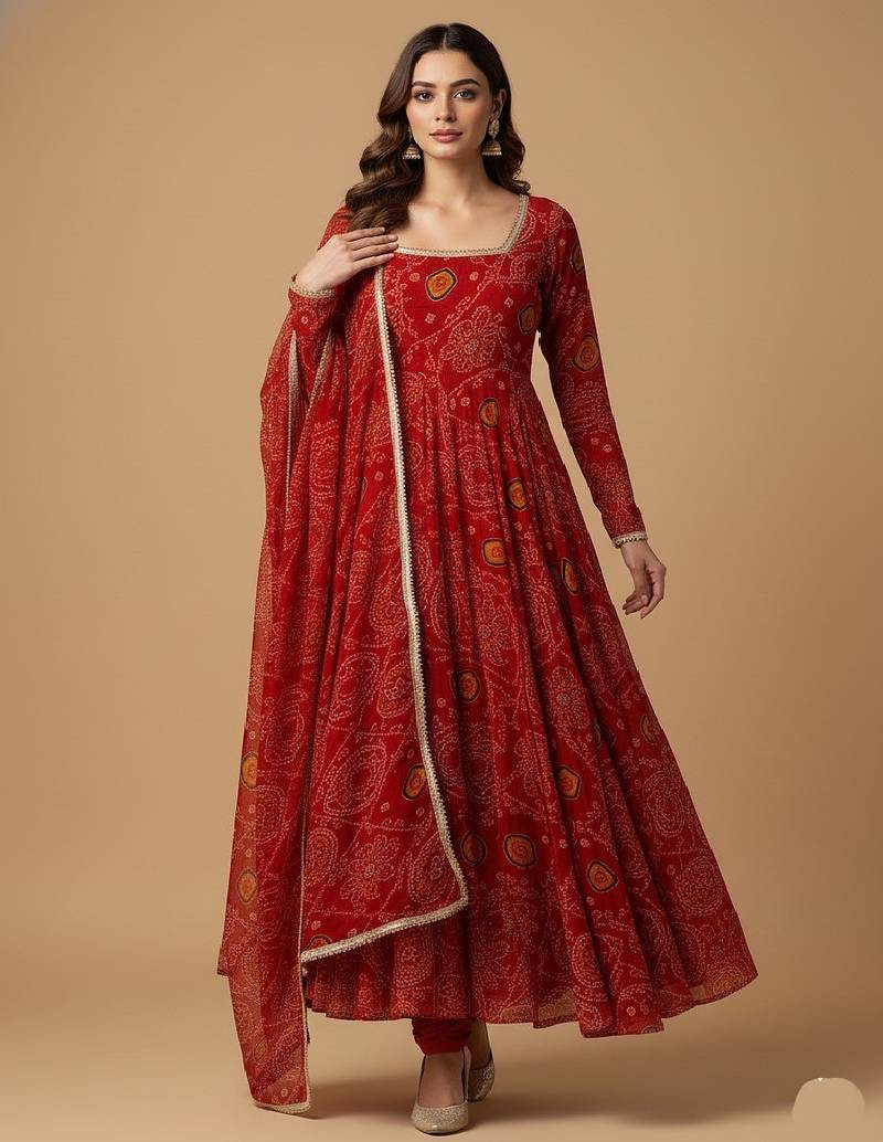 | Product Name | Red Printed Pure Chiffon Salwar Suit | |