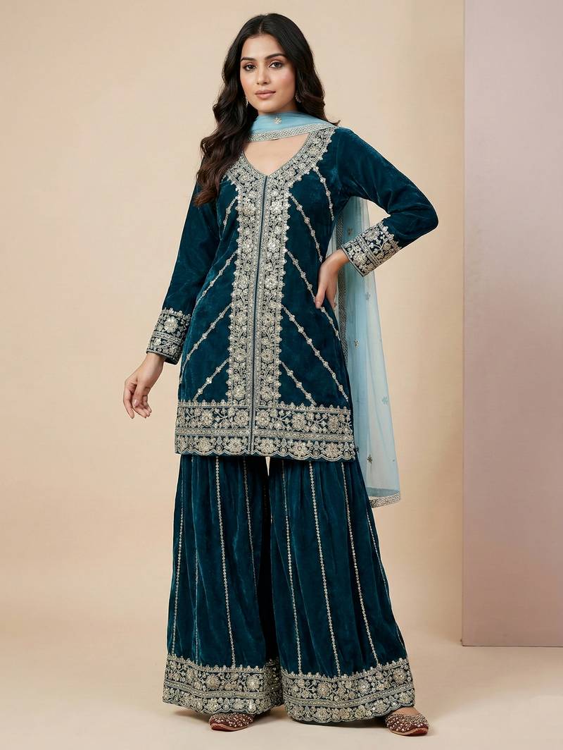 | Product Name | Teal Designer Velvet Readymade Designer Suit | |
