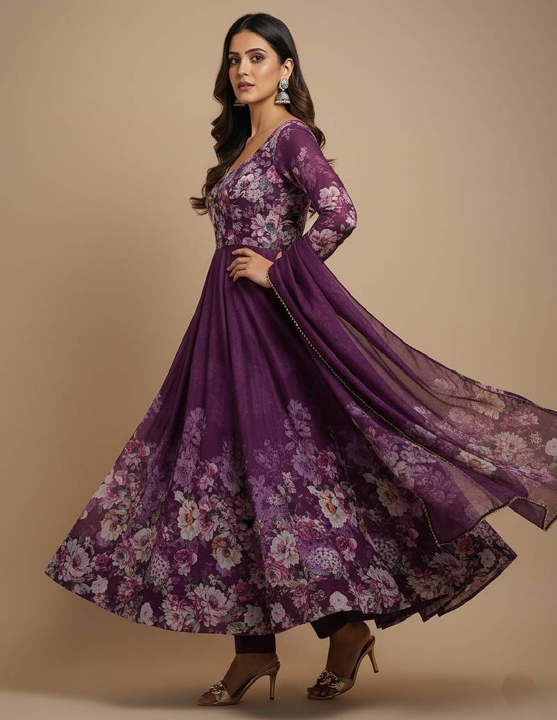 | Product Name | Wine Printed Pure Organza Salwar Suit | |