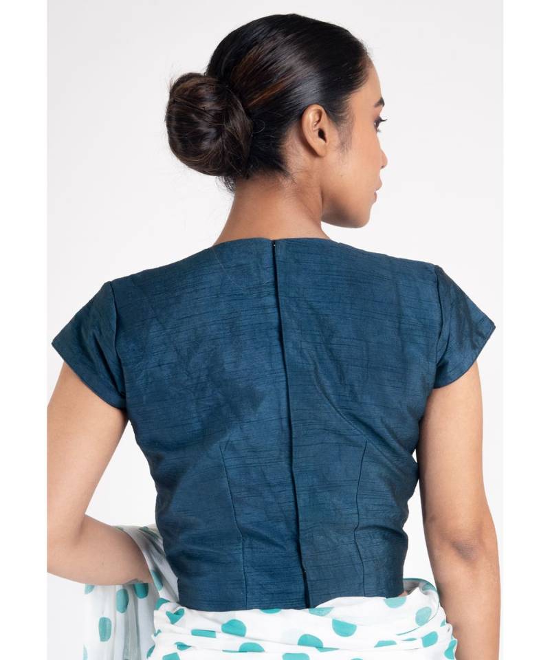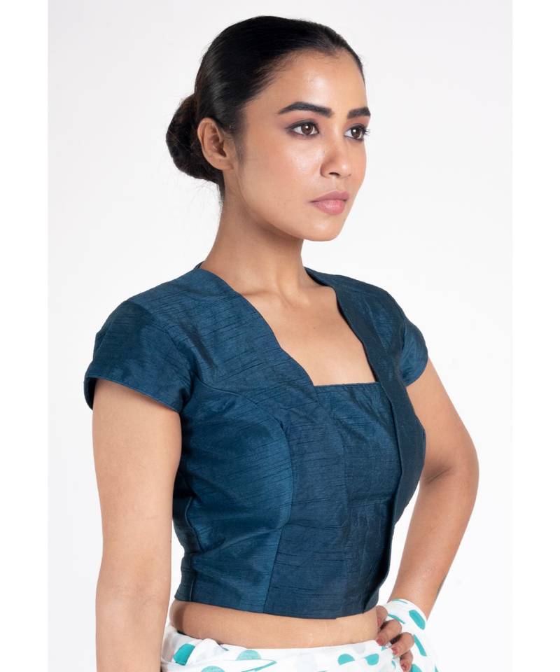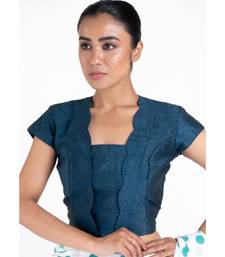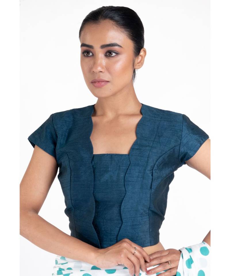 | Product Name | Mid Night Blue Rawsilk Padded Blouse With Scallop Overlap Design | |
