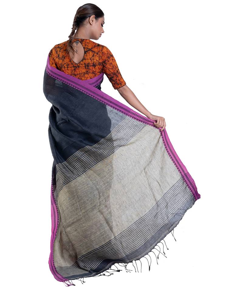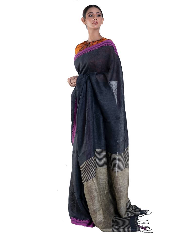 | Product Name | Navy Blue Handloom Linen Saree With Woven Border And Pallu | |