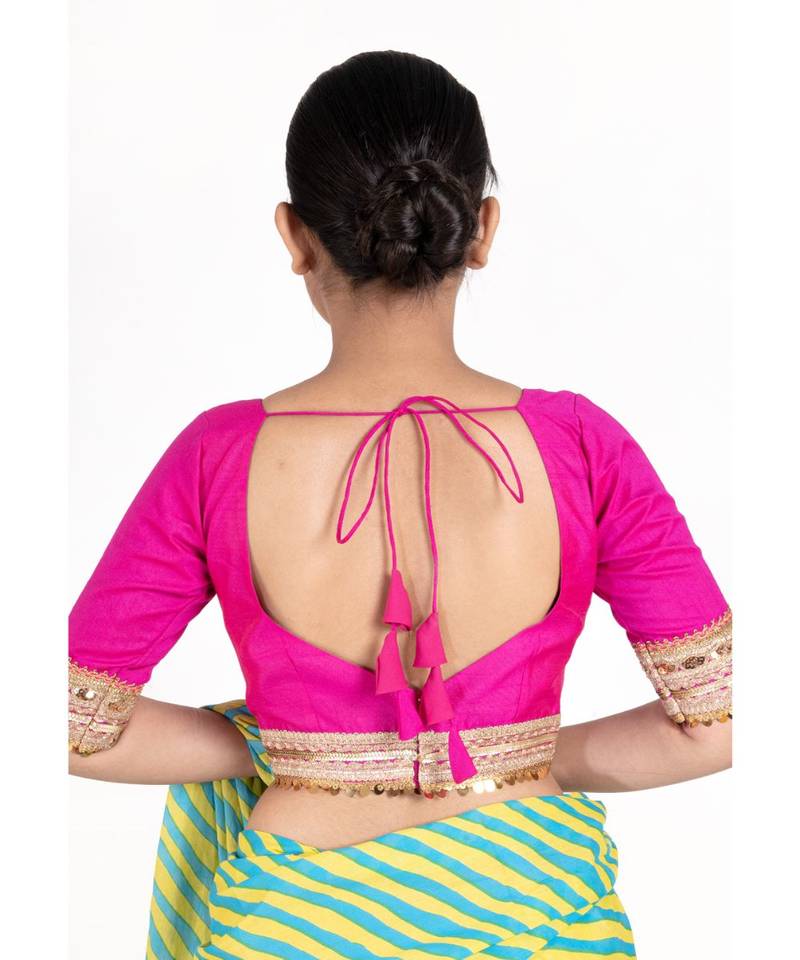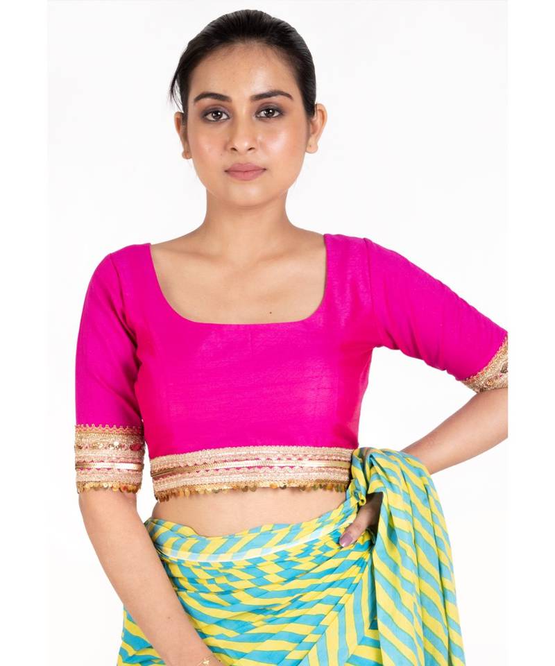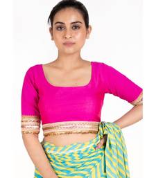 | Product Name | Pink Rawsilk Padded Blouse With Golden Lace Detailing | |