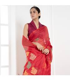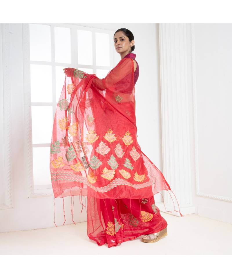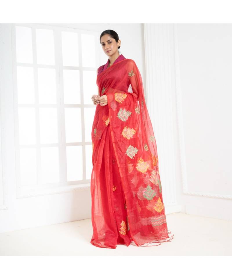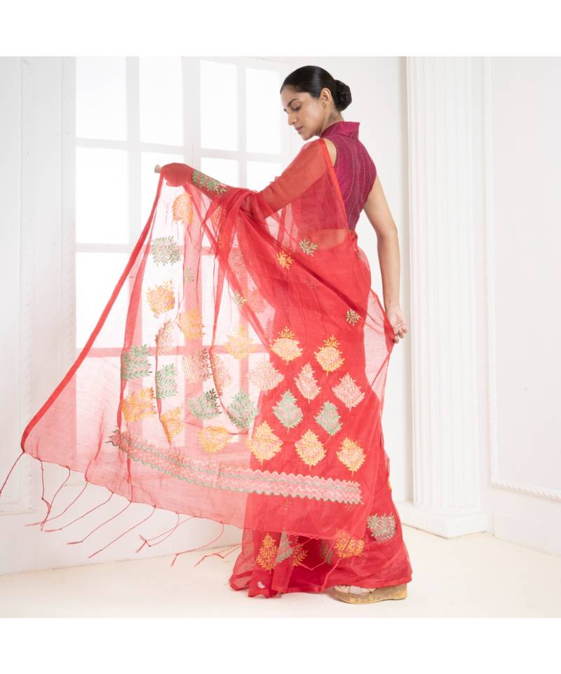 | Product Name | Red Kora Cotton Saree With Multicolor Thread Embroidery | |