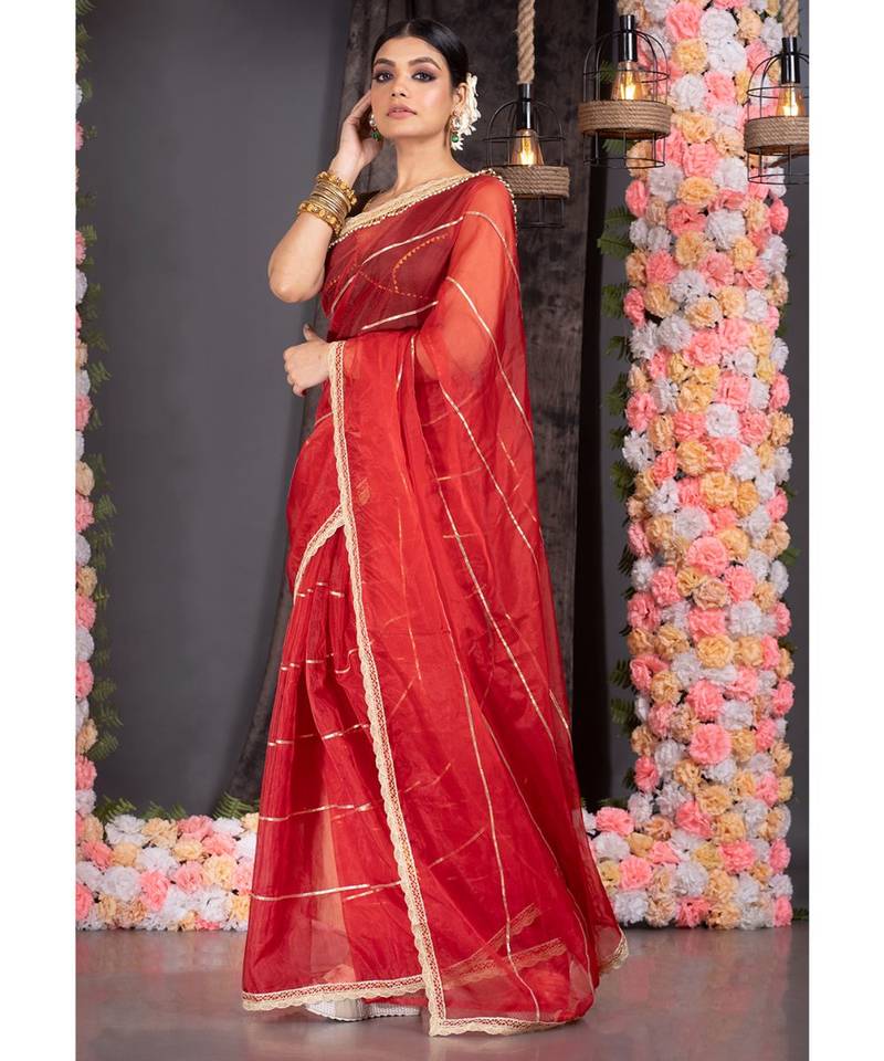 | Product Name | Red Organza Saree With Gota Work And Scallop Border | |